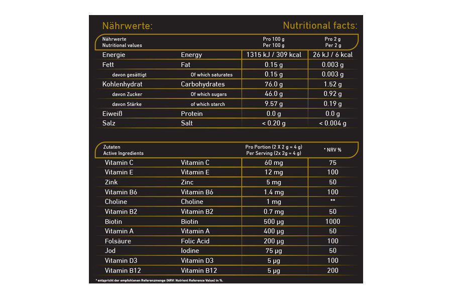 هل تعانين من ضعف وتكسر أظافركِ؟ تحتوي هذه العلكة اللذيذة على ٥٥ ميكروغرامًا من السيلينيوم و١٠ ملغ من الزنك، مما يُساعد على الحفاظ على صحة أظافركِ.