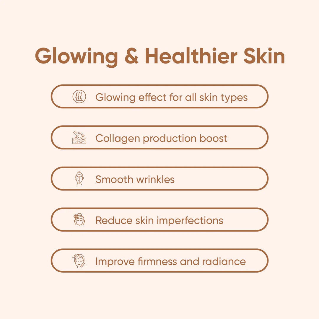 - لبشرة صحية : يمكن أن يساعد الكولاجين في دعم صحة البشرة ورطوبتها ومرونتها من خلال تقليل أضرار أشعة الشمس والخطوط الدقيقة والتجاعيد
