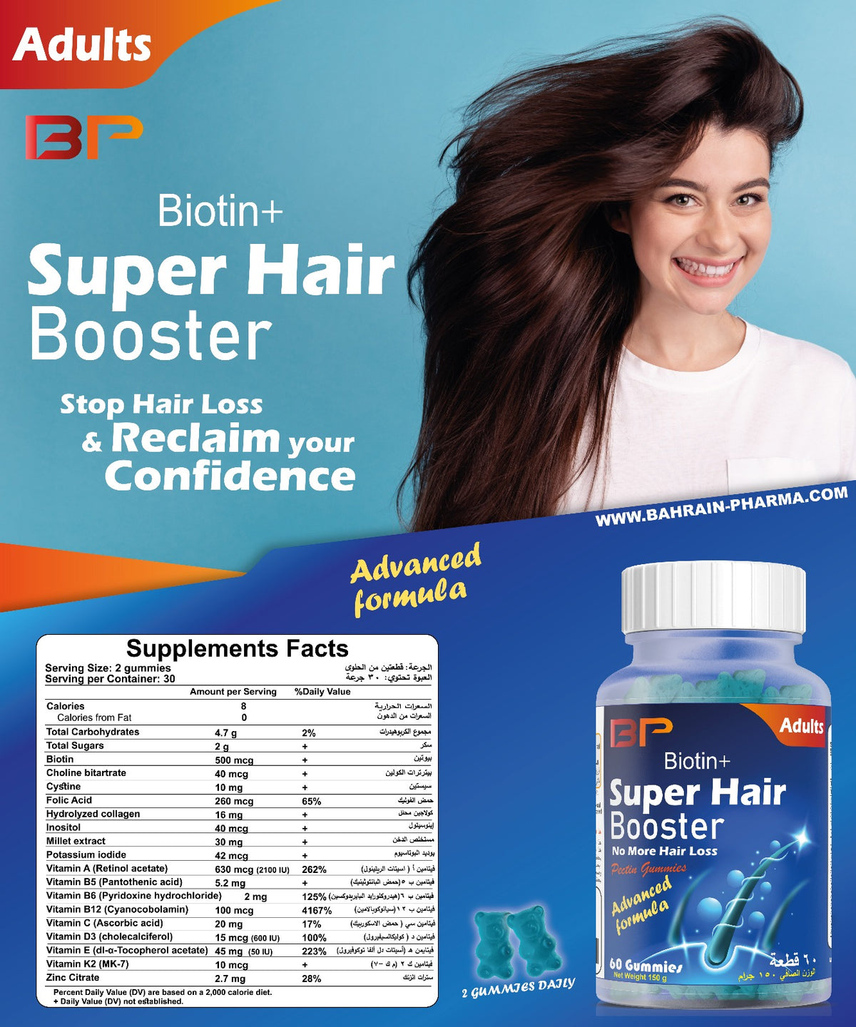 البيوتين + معزز الشعر الفائق - 60 علكة