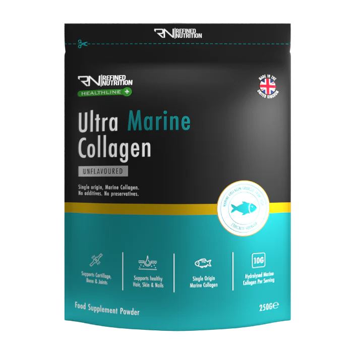 كولاجين ألترا مارين من ريفايند نيوتريشن هو مسحوق كولاجين نقي مستخلص من سمك من مصدر واحد. يوفر كولاجين ألترا مارين 10 غرامات من كولاجين السمك المتحلل لكل جرعة، بدون أي إضافات. كولاجين نقي وصافٍ فقط!