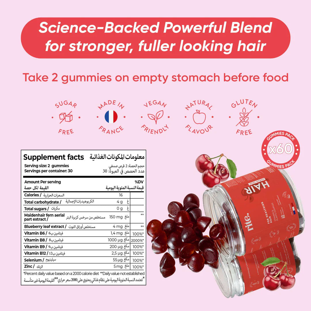 ادعمي جمالكِ من الداخل مع هذه الحلوى النباتية اللذيذة من "نون نيوترشن". تحتوي كل قطعة على البيوتين، وفيتامينات أ، ب6، ج، د3، هـ، والزنك، والسيلينيوم. ولدعم شعركِ، تحتوي "نون نيوترشن" على البيوتين، وهو فيتامين أساسي يساعد على إنتاج الكيراتين، وهو البروتين الرئيسي الذي يُكوّن بنية الشعر. كما ثبت علميًا أن السيلينيوم والزنك يُساعدان في الحفاظ على شعر صحي وطبيعي.