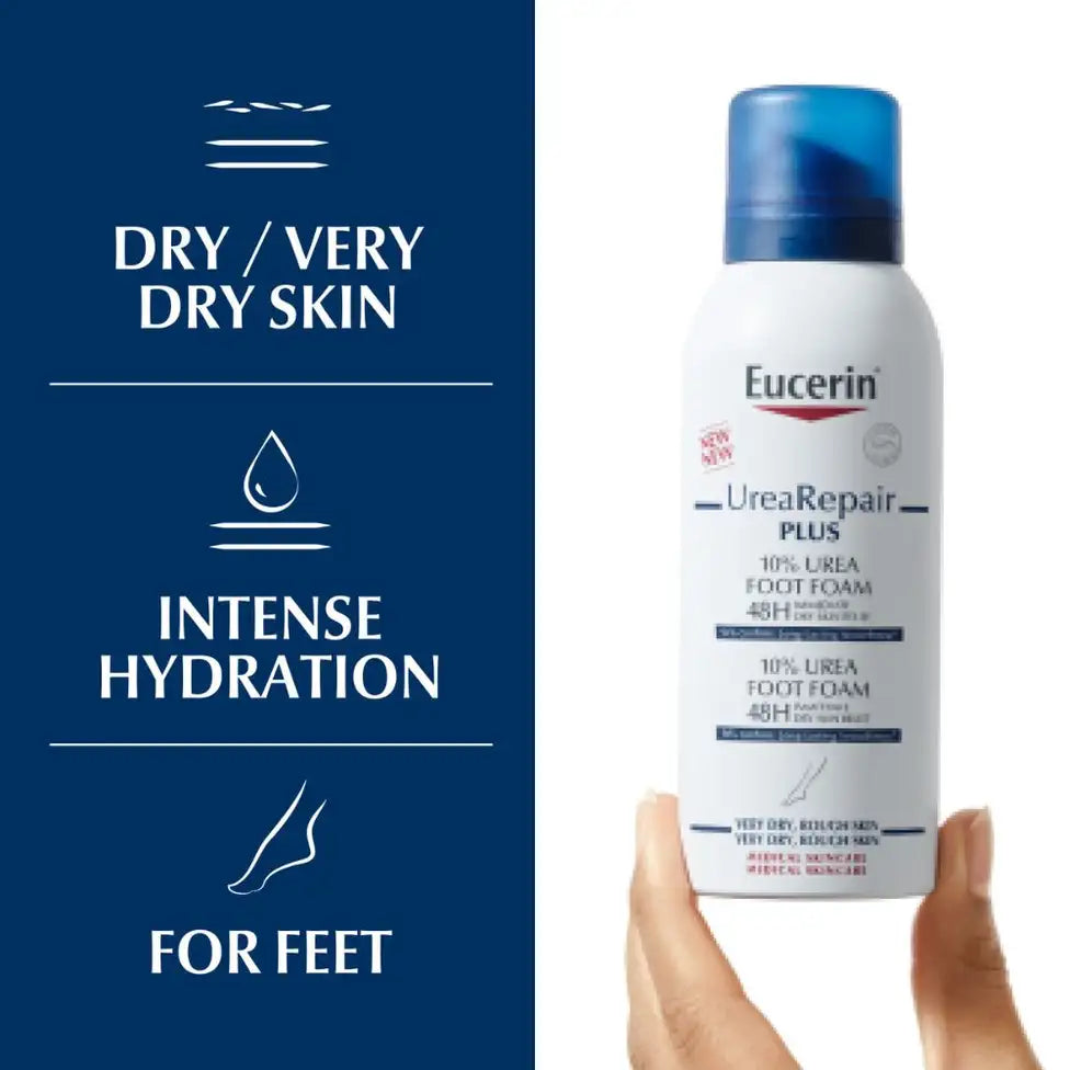 تعالج رغوة القدم Eucerin UreaRepair PLUS 10% Urea Foot Foam بشرة القدمين الخشنة والجافة مع ترطيب مكثف لتوفير راحة فورية. يجمع منتج العناية بالقدم هذا بين المكونات الرئيسية لعلاج البشرة الجافة بقوة من خلال حل مستهدف. تظل اليوريا هي المعيار الذهبي في علاج البشرة الجافة. المكونات الكلاسيكية مثل NMF تزود البشرة برطوبة مكثفة بينما يعمل السيراميد على تقوية حاجز الجلد ومنع فقدان الرطوبة. تعمل هذه المكونات جنبًا إلى جنب مع ديكسبانثينول وديكانديول، وهما مكونان نشطان يظهران بشكل بارز في العناية بالقدم نظرًا لقدرتهما على تجديد الجلد بسرعة وتقليل الكائنات الحية الدقيقة المسؤولة عن الالتهابات الفطرية. وكنتيجة مثبتة، تعمل رغوة القدم الجديدة على زيادة مرونة القدم الحساسة للفطريات.