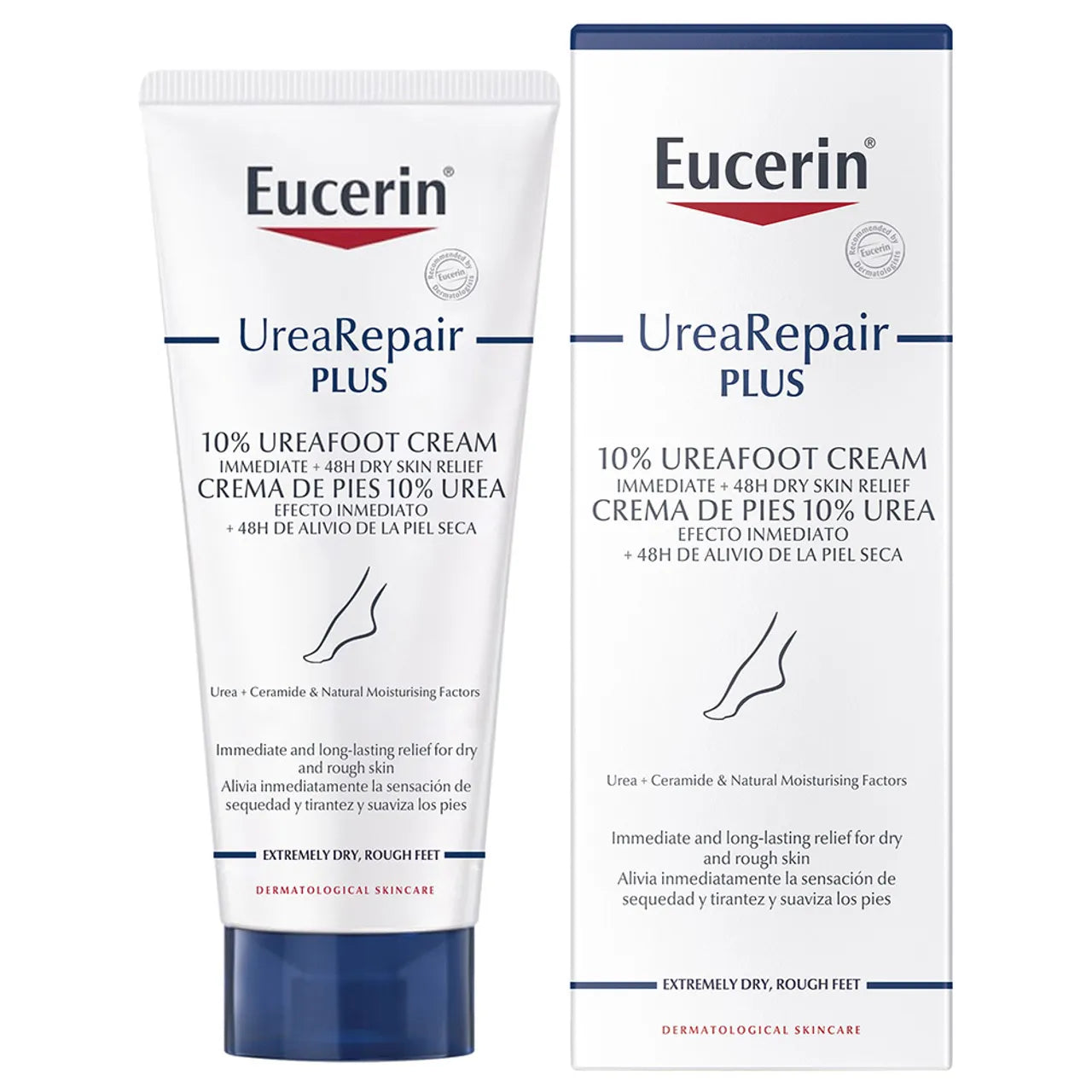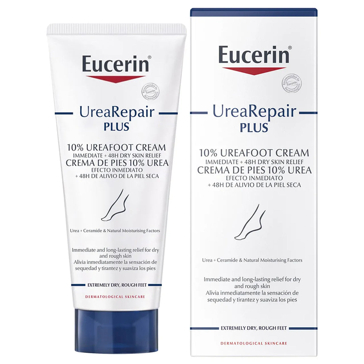 يمنح كريم القدم Eucerin UreaRepair PLUS 10% Urea للقدمين الجافة جدًا والخشنة الترطيب المكثف الذي تحتاجه. يحتوي على مزيج فريد من المكونات - اليوريا والسيراميد وعوامل الترطيب الطبيعية الأخرى (NMFs) - التي تحبس الرطوبة وتصلح حاجز الحماية الطبيعي للبشرة لمنع المزيد من فقدان الرطوبة. أثبتت التركيبة سريريًا وجلديًا أنها توفر راحة فورية وترطيبًا مكثفًا وطويل الأمد، مما يؤخر الجفاف والخشونة لمدة تصل إلى 48 ساعة. يصبح الجلد ناعمًا مرة أخرى ويتم تقليل سماكة الجلد والكالو.