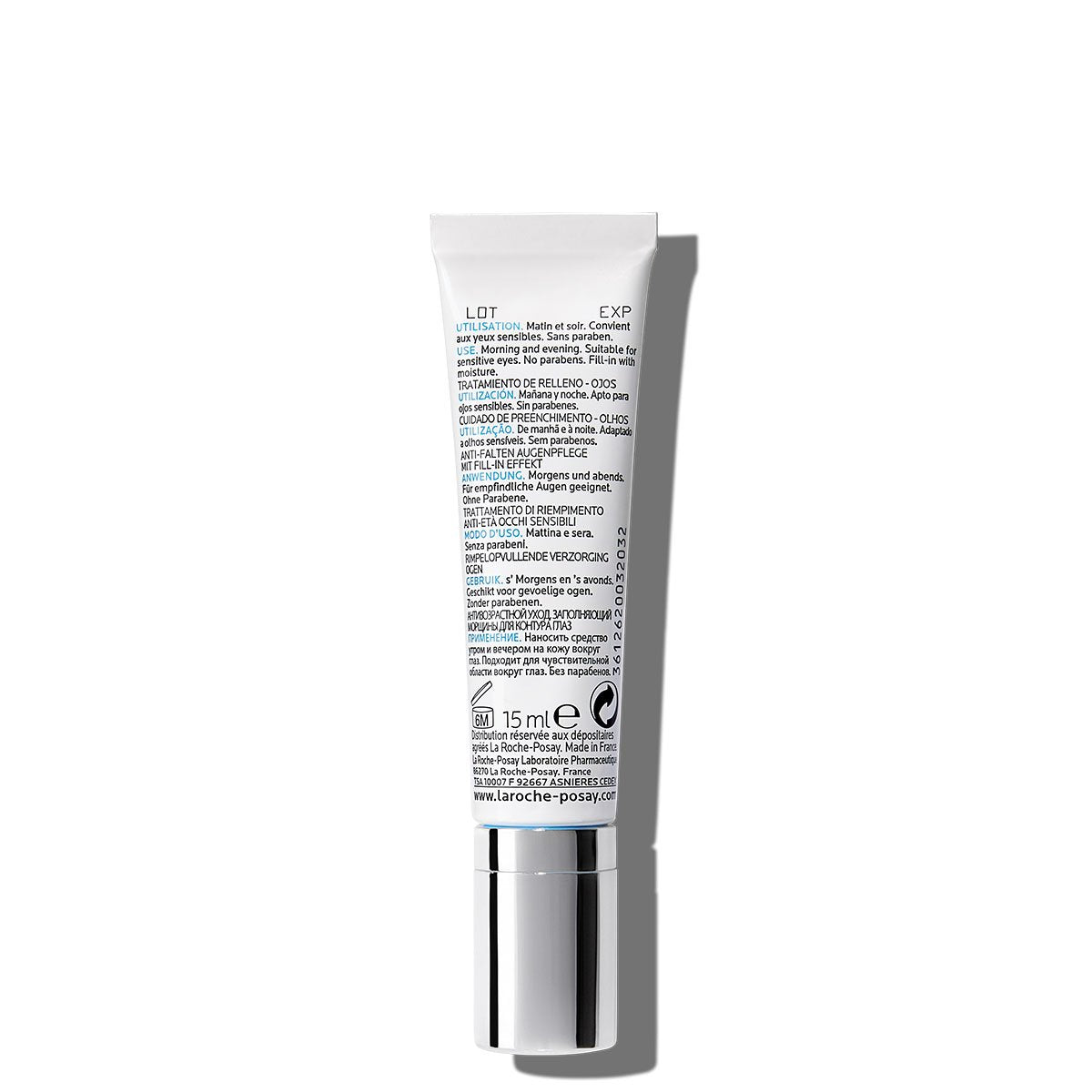 تركيبة تحتوي على حمض الهيالورونيك عالي ومنخفض الوزن الجزيئي تعمل على علاج التجاعيد الموجودة والناشئة. بالإضافة إلى ذلك، تحتوي على جلايسين سابونين النشط بيولوجيًا. يعمل عامل الحماية من أشعة الشمس SPF 15 بالإضافة إلى الحماية من أشعة UVA على تقليل الشيخوخة المبكرة وتعميق التجاعيد في منطقة العين. مما يجعل البشرة تبدو أكثر نعومة وشبابًا.