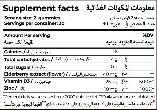 تظهر الأبحاث الجديدة أن مستويات تناول فيتامين د المثلى قد تكون أعلى مما كان يُعتقد سابقًا. يحتوي كل قرص من Immunace Extra Protection على مستوى أعلى يبلغ 75 (3000 وحدة دولية) من فيتامين د3*، وهو الشكل المحدد الذي يصنعه جسم الإنسان بشكل طبيعي وبالتالي فهو مفضل على فيتامين د2 الموجود في بعض المكملات الغذائية.