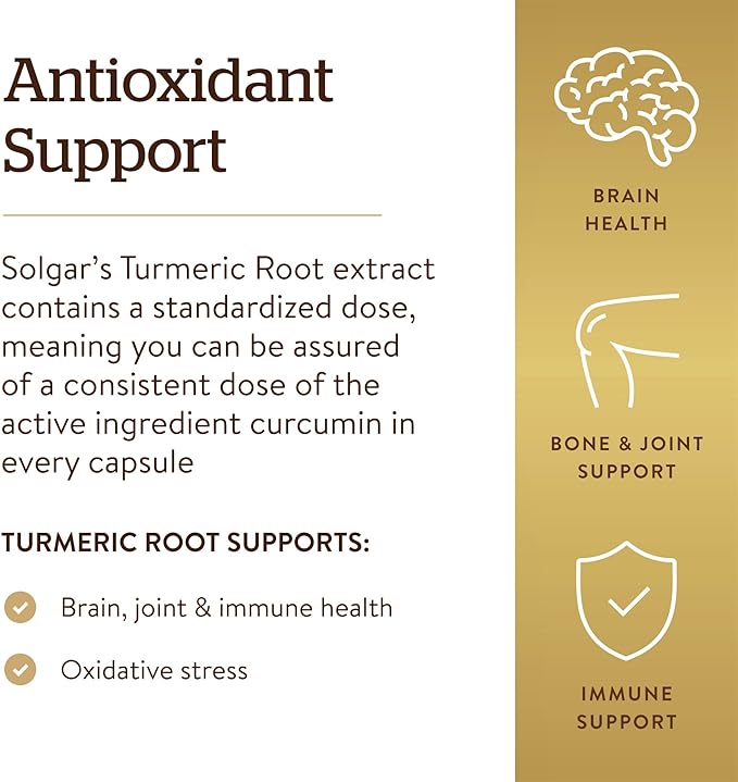 • دعم الدماغ والمفاصل والمناعة. يحتوي الكركم الموحد Solgar على 400 مجم من مستخلص الكركم، مما ينتج 372 مجم من الكركمينويدات (93%) لصحة الدماغ والمفاصل والمناعة.