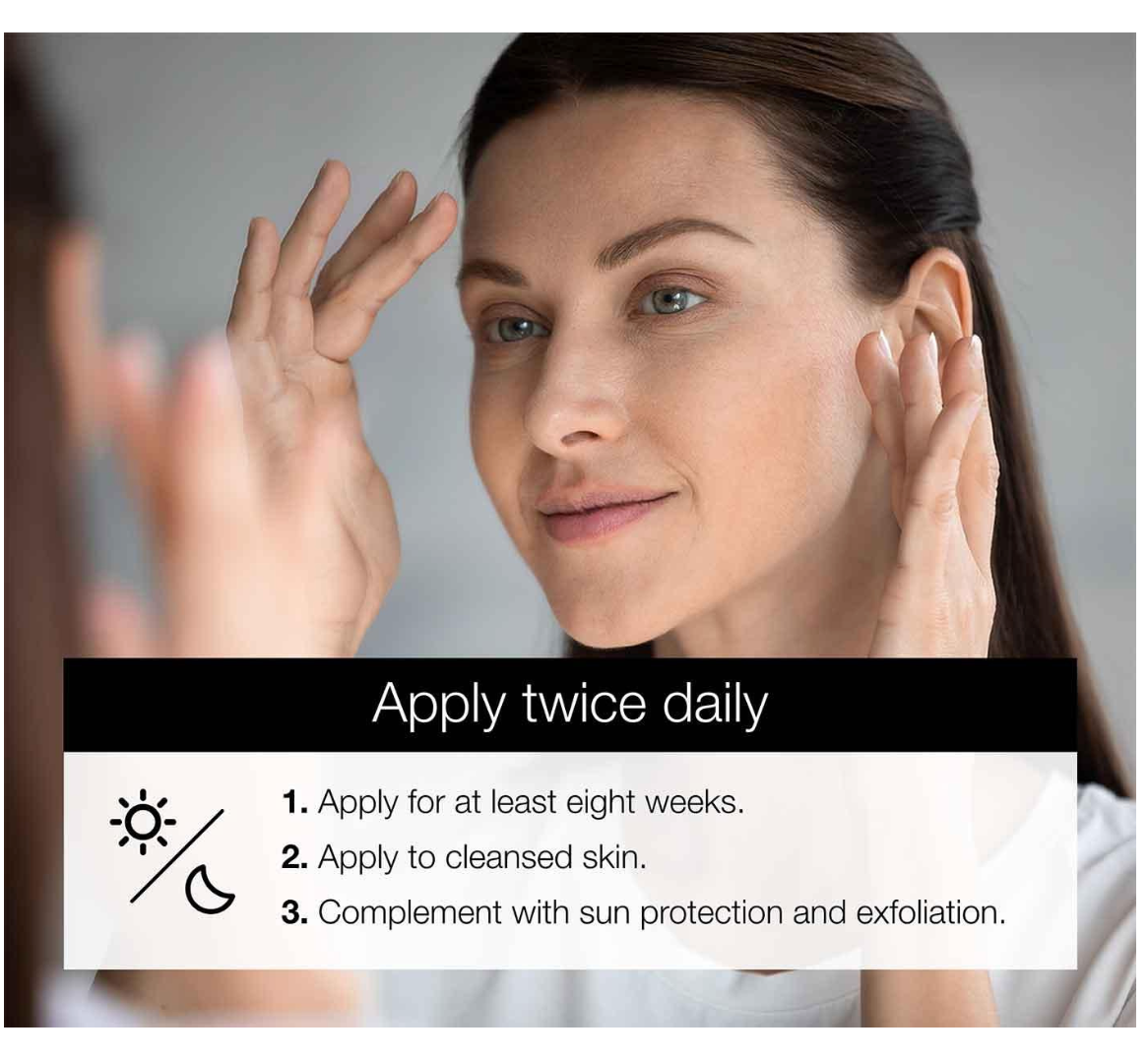يوضع كل صباح على بشرة نظيفة لمدة لا تقل عن 8 أسابيع.