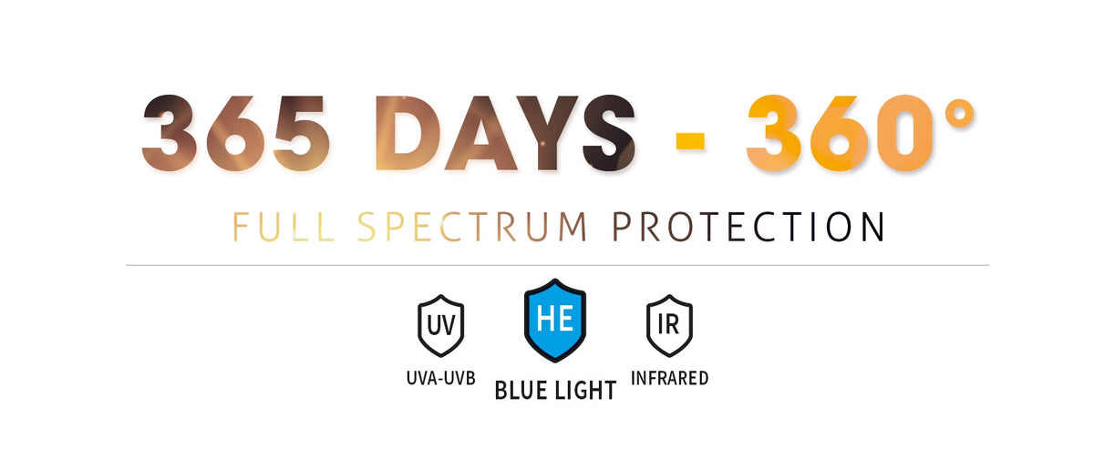 يحمي من أشعة الشمس بنسبة 100%: الضوء الأزرق - الأشعة تحت الحمراء أ - الأشعة فوق البنفسجية الطويلة والمتوسطة