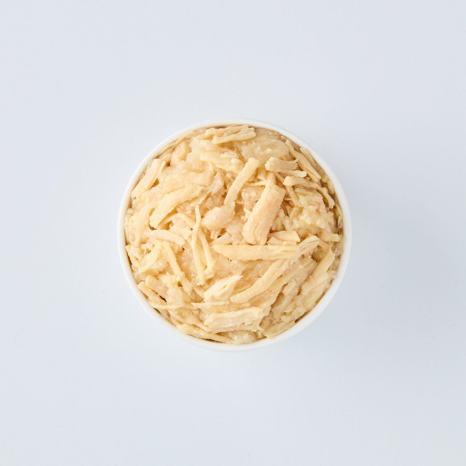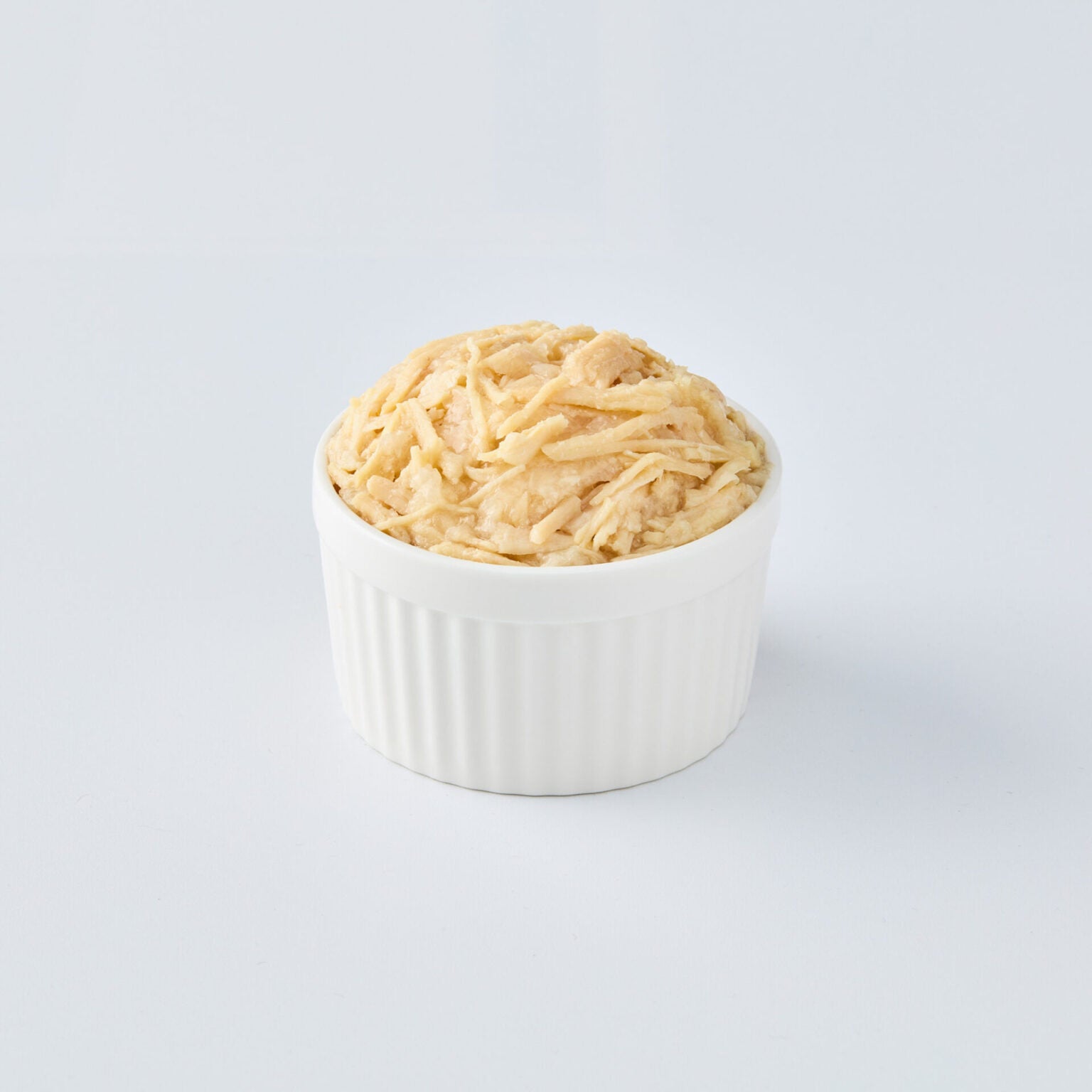 لحم دجاج (صدر دجاج منزوع العظم والجلد)، روبيان، نشا تابيوكا معدل، مسحوق جيلي، نكهة طبيعية، فيتامينات، معادن، صمغ زانثان، فركتو أوليجوساكاريد (FOS)، تورين، زيت السمك، فيتامين هـ