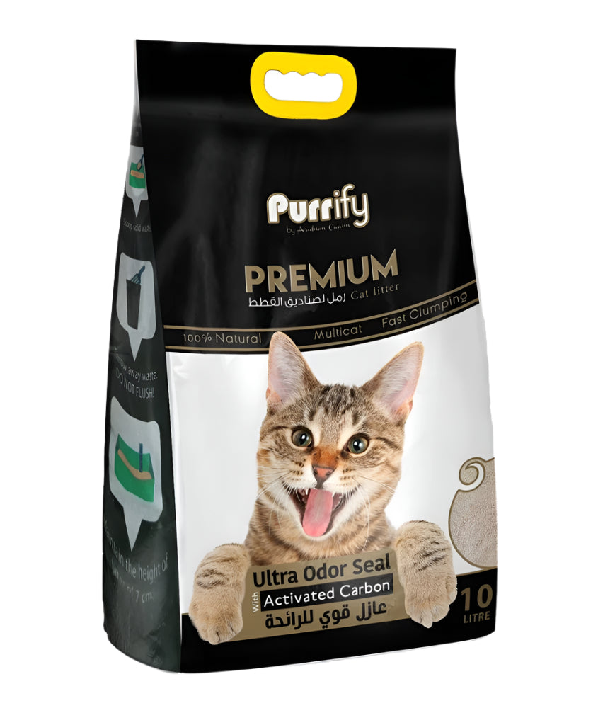 أصبحت الآن رمل القطط Purrify Premium بتركيبة فحم فريدة من نوعها ولديها حبيبات متوازنة للغاية تشبه الرمال الحقيقية مما يسمح لقطتك بالتكيف بسهولة مع رمل القطط هذا وهو ناعم جدًا ومريح على أقدام قطتك.