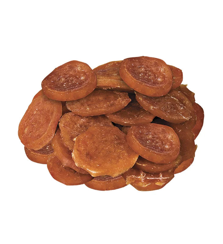 هذه قطع دجاج مصنوعة من قطع فيليه دجاج نقية. طرية، سهلة التفتيت إلى قطع صغيرة، ومفيدة دائمًا. لا يقاومها أي كلب.