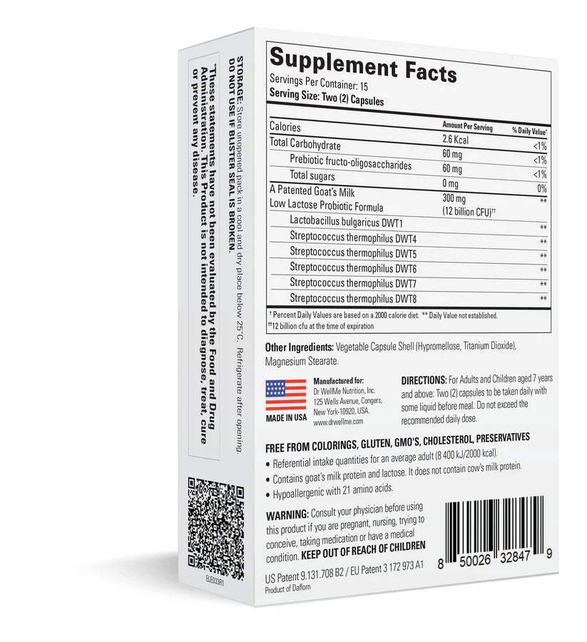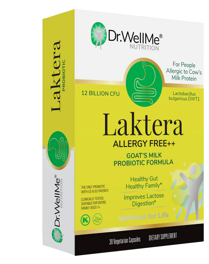 دكتور ويل مي™ يقدم ملحق LAKTERA مجموعة من الفوائد للأفراد الذين يسعون إلى الحفاظ على صحتهم وعافيتهم بشكل عام. تم تركيب هذا المكمل الفريد من نوعه بتركيبة بروبيوتيك حاصلة على براءة اختراع مصنوعة من حليب الماعز النقي، وتحتوي على أكثر من 12 مليار وحدة تشكيل مستعمرة نشطة وكامنة من بكتيريا Lactobacillus bulgaricus DWT1 وStreptococcus thermophilus DWT4,5,6,7,8، المعزولة من مياه الينابيع النقية في بلغاريا.