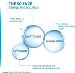 • يقلل من العيوب: مستخلص طبيعي من ميرتاسين، وهو مكون نشط يساعد في مكافحة بكتيريا حب الشباب عن طريق الحد من بنية الأغشية الحيوية الخاصة بها