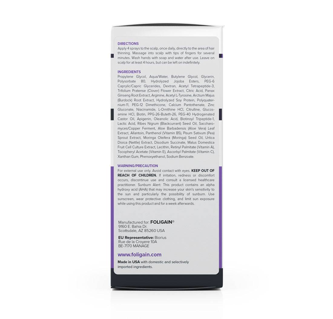 استعيدي حيوية وكثافة شعرك مع FOLIGAIN® تركيبة ثلاثية المفعول كاملة. هذه التركيبة مصممة خصيصًا للنساء، وهي لا تتعلق فقط بمعالجة الشعر الخفيف - ولكنها تتعلق بتمكين المرأة من الحصول على الامتلاء والسمك والجسم الذي ترغب فيه. ادخلي إلى عالم تلتقي فيه الثقة بالحيوية، ويصبح شعرك رمزًا للقوة والجمال. أطلق العنان لإمكانية الحصول على فروة رأس أكثر صحة وخصلات أكثر كثافة بفضل الفعالية الموثوقة لـ FOLIGAIN.® .