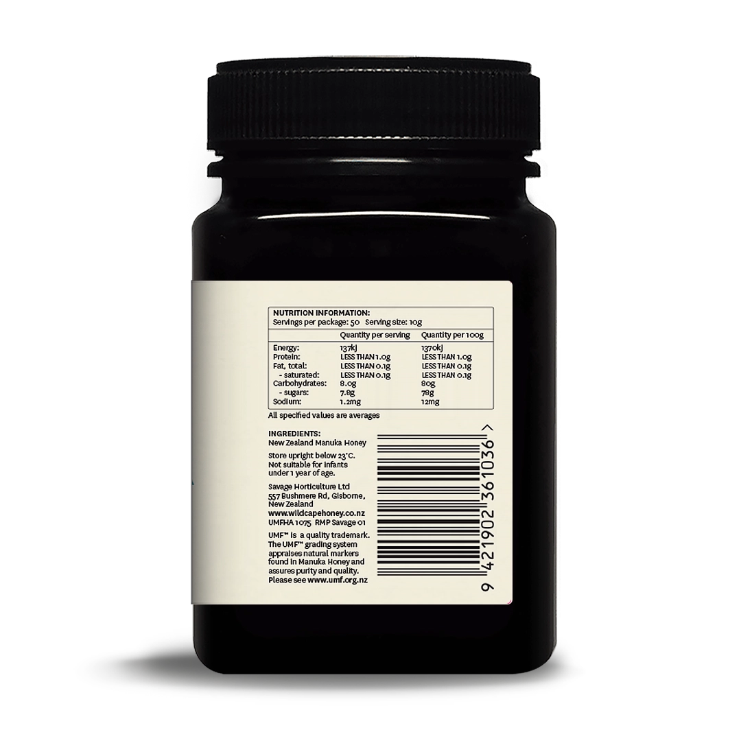 يحتوي عسل مانوكا WildCape UMF™ 10+ على ما لا يقل عن 263 مجم / كجم من ميثيل جليوكسال (MGO).
