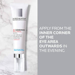 يوفر مركب الريتينول الحصري الموجود في كريم العين Redermic R المضاد للشيخوخة مفعولًا ناعمًا للبشرة، ويجمع هذا مع الكافيين للحصول على تأثير مضاد للشيخوخة وشد البشرة. التركيبة مناسبة أيضًا للأشخاص ذوي البشرة الحساسة حول العينين.