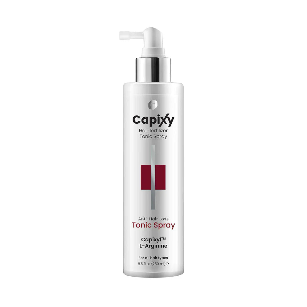2 - رش 6 بخات من رذاذ Capixy Tonic على فروة الرأس.