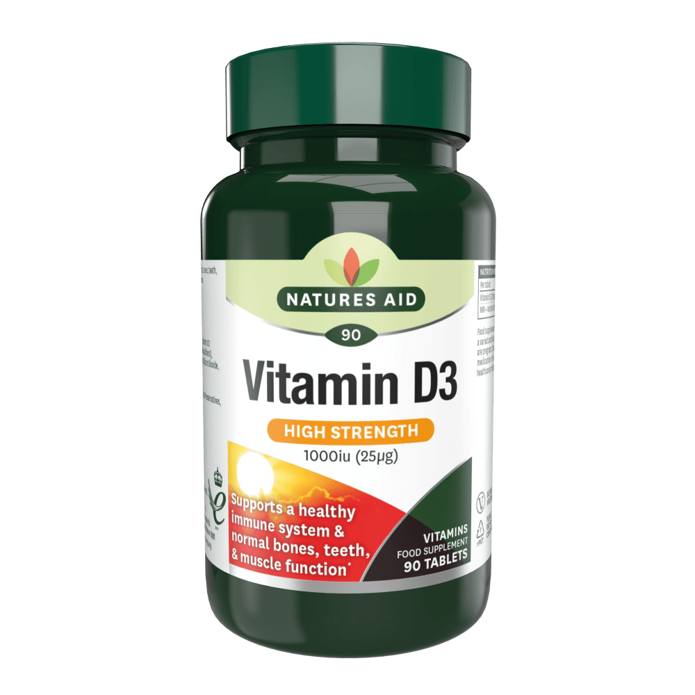 • يساهم فيتامين د3 من Nature's Aid® في الحفاظ على صحة العظام والأسنان ووظيفة العضلات بشكل طبيعي.