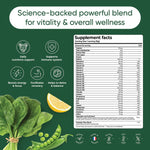 تم تركيب منتجنا اليومي من الخضراوات بخبرة بمزيج قوي من 26 فيتامين ومعادن ، و12 نوعًا من الأطعمة الخارقة ، و 6 إلكتروليتات أساسية ، و 5 جرامات من بروتين البازلاء . إنها طريقة بسيطة ومريحة لضمان تناولك اليومي للعناصر الغذائية الأساسية مع دعم جهاز المناعة لديك، وتعزيز الطاقة، وتحسين الصحة العقلية والجسدية.