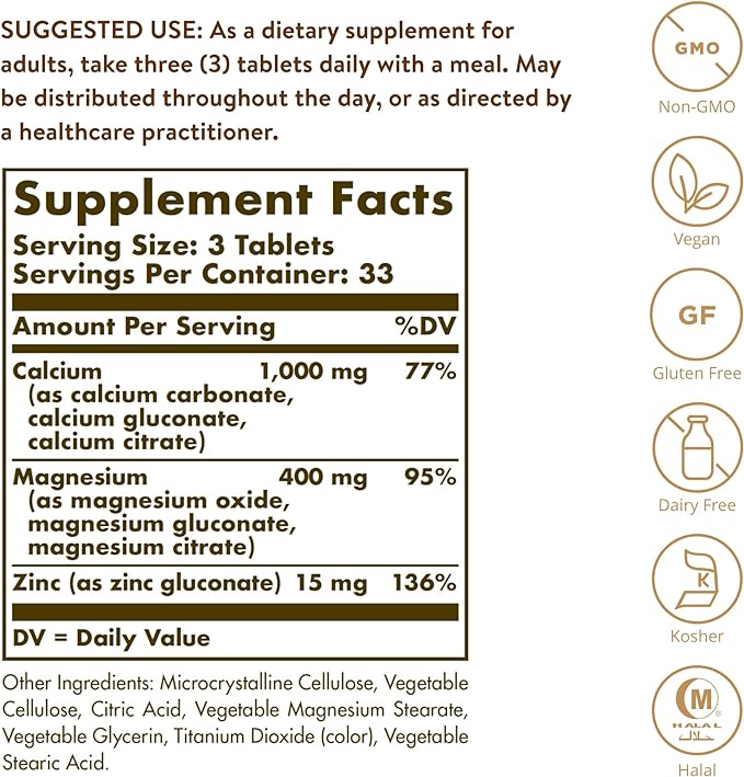 يحاول سولجار® أقراص الكالسيوم والمغنيسيوم والزنك اليوم.