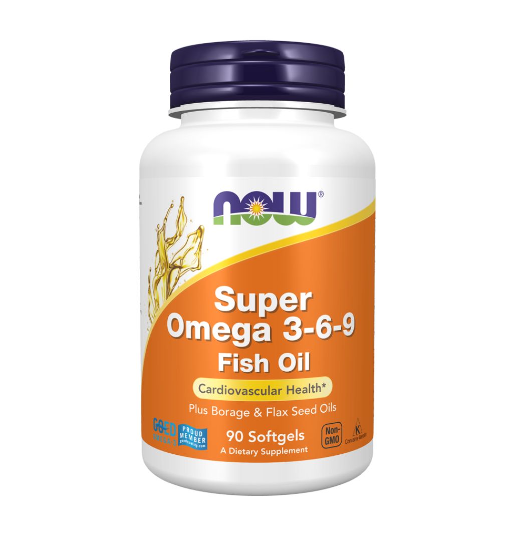 Super Omega 3-6-9 عبارة عن مزيج من زيوت الأسماك ولسان الثور وبذور الكتان. يحتوي هذا المزيج من الزيوت الغذائية المعروفة على توازن فريد من أحماض أوميجا 3 وأوميجا 6 الدهنية الأساسية بالإضافة إلى أوميجا 9، وهو حمض دهني غير أساسي ولكنه مفيد.* أوميجا 3، وحمض ألفا لينولينيك، وEPA و DHA، وأوميغا 6، GLA، ضروريان للحفاظ على صحة الجلد، والتوازن الطبيعي لجهاز المناعة، ووظيفة الجهاز العصبي المناسبة.*
