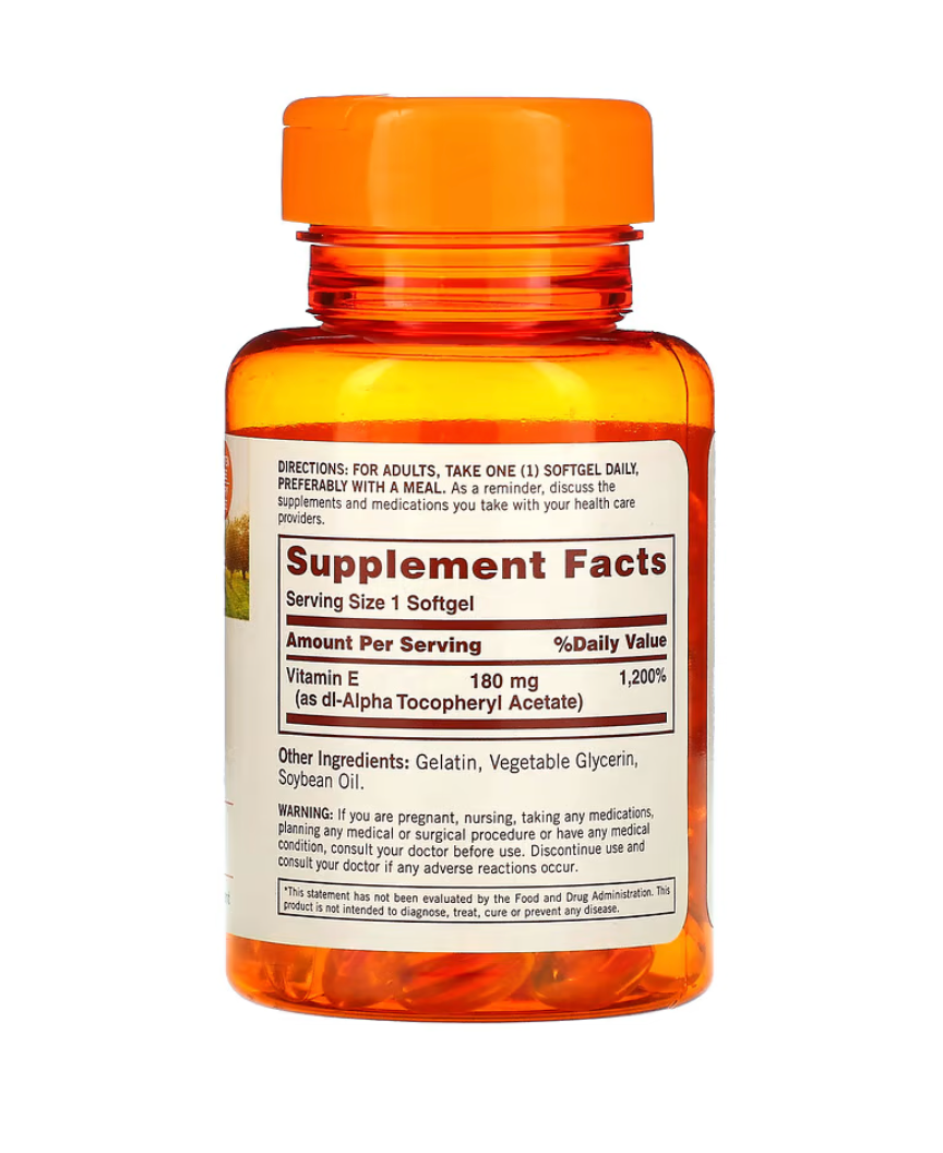 Vitamin E is a fat soluble vitamin that is known for providing antioxidant support. Sundance Vitamins Vitamin E provides you with 180 mg (400 IU) of this essential nutrient in an easy to use way.