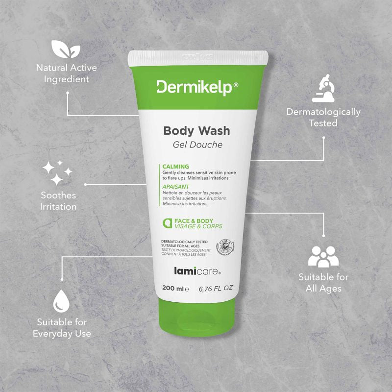 Dermikelp® Body Wash is expertly formulated to gently cleanse sensitive, atopic skin, helping to minimise irritations and flare-ups. Featuring the natural active ingredient CEM-K, this non-irritant formula provides soothing relief for irritated and reactive skin, leaving it calm, refreshed, and comfortable. Suitable for everyday use, Dermikelp® Body Wash is ideal for those prone to eczema, dermatitis, and other skin sensitivities, making it a perfect choice for the whole family.