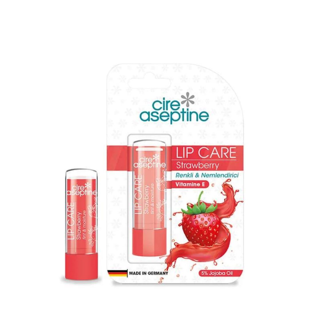 Cire Aseptine Strawberry Colored Lip Care Cream helps soften and moisturize cracked and dry lips with its special formula containing Jojoba Oil and Vitamin E.