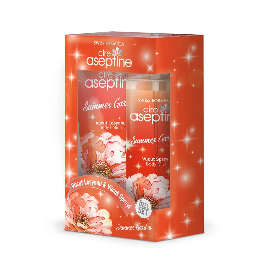 Cire Aseptine Summer Garden 200 ml Body Lotion & 200 ml Body Mist Set Cire Aseptine Summer Garden 200 ml Body Spray; Thanks to its special formula, it helps to restore the moisture balance of the skin, nourish it, increase elasticity and gives a brighter appearance. Thanks to its special formula, it helps to restore the moisture balance of the skin, nourish it, increase its elasticity and gain a brighter appearance. It does not leave a greasy feeling and is easily absorbed. Suitable for all of skin types. With its special formula Cire Aseptine Summer Garden 200 ml Body Mist provides fragrance all day.