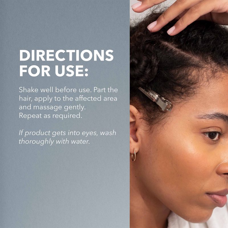 Shake well before use. Part the hair, apply to the affected area and massage gently. Repeat as required. If product gets into eyes, wash thoroughly with water.