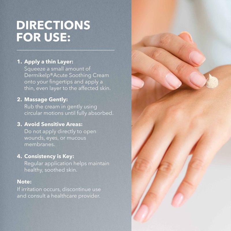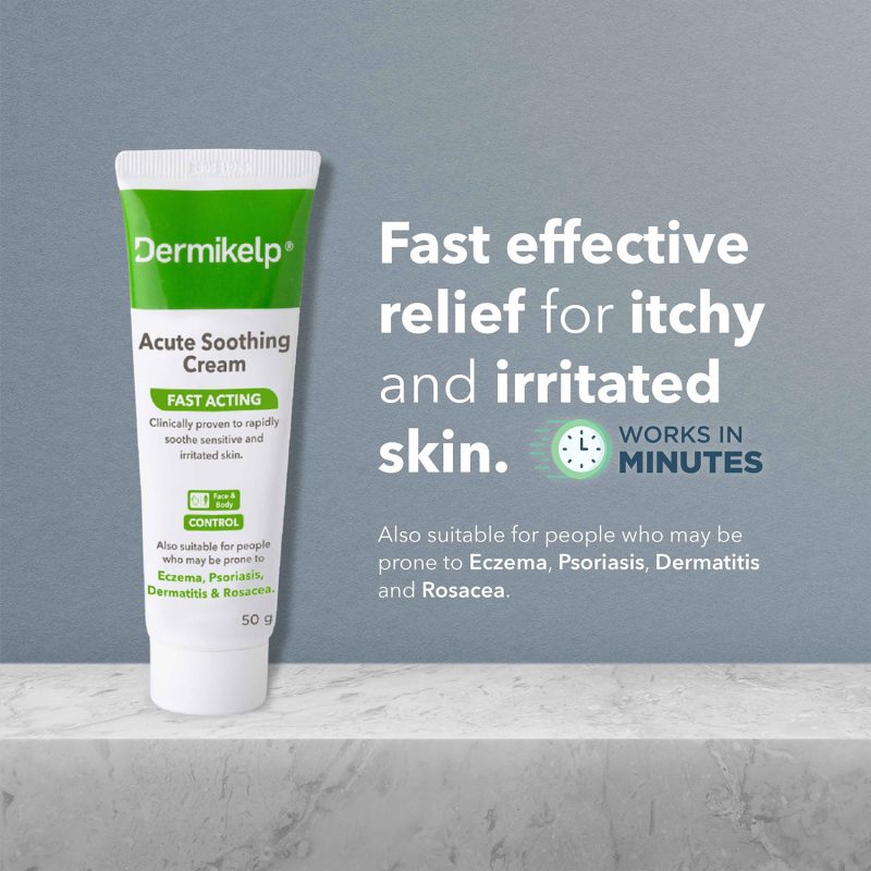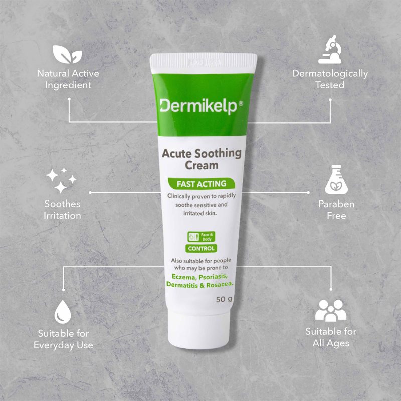 Dermikelp® Acute Soothing Cream is formulated to provide rapid and effective relief for sensitive and irritated skin. Its gentle formula is designed to soothe discomfort and support the skin’s natural recovery process, making it suitable for individuals prone to eczema, psoriasis, dermatitis, and rosacea. Free from steroids and harsh chemicals, this cream offers a natural, calming solution to help reduce irritation and redness. Dermikelp® is dermatologically tested and safe for daily use to maintain healthy, comfortable skin.