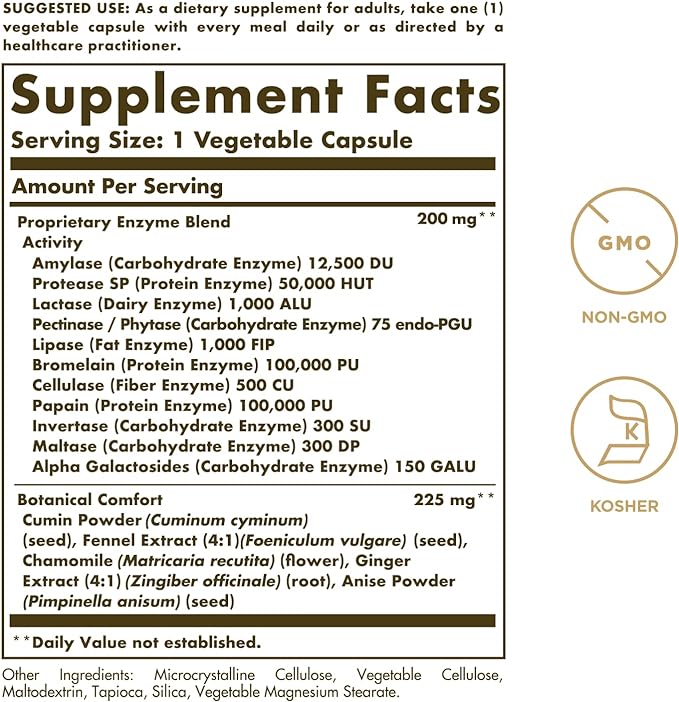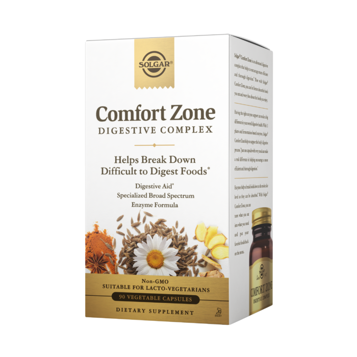 Having the right enzyme support can make a big difference in your overall digestive health. Enzymes help to break foods down to the molecular level so they can be absorbed.* With 11 plant- and fermentation-based enzymes, Solgar® Comfort Zone helps to support the body’s digestive process.*