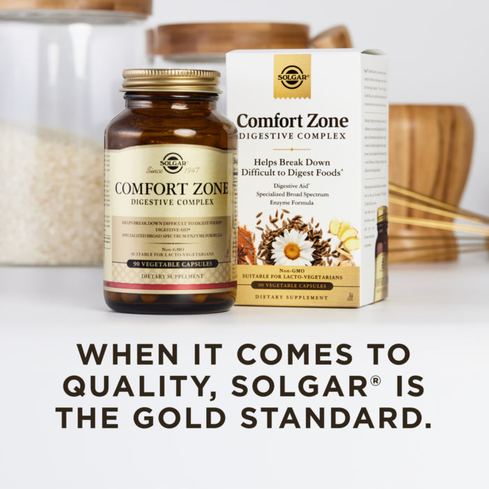 Solgar® Comfort Zone is an advanced digestive complex that helps to encourage more efficient and thorough digestion.* Feel better about the foods you eat and worry less about the foods you enjoy by turning what you eat into what you need.