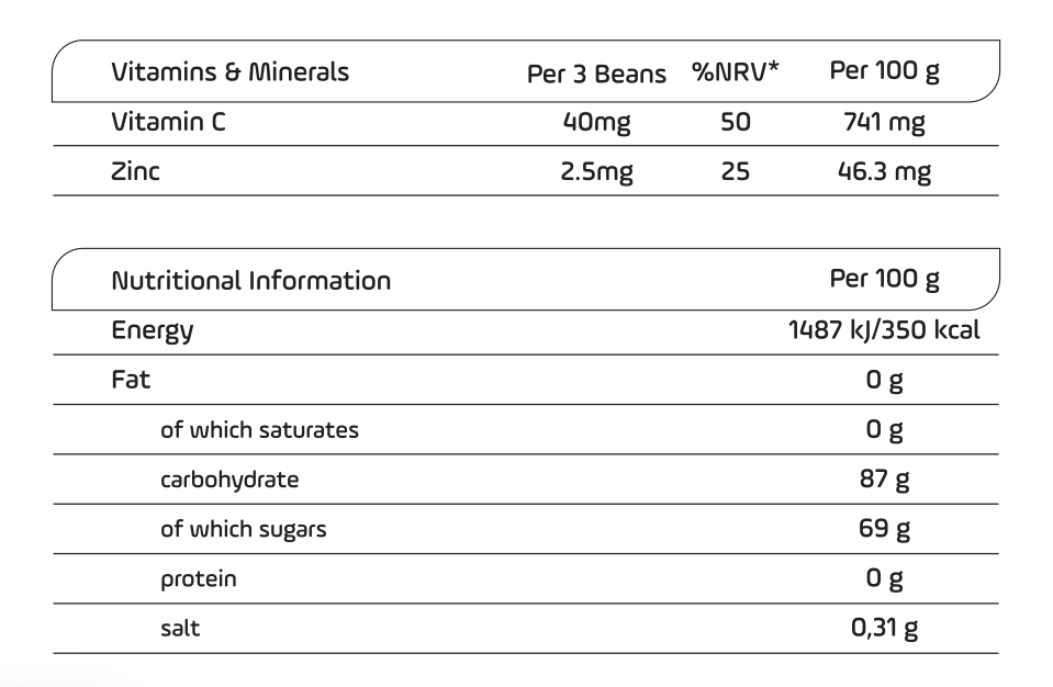 The ENERGY gummies are 100% vegan & halal. Made with natural fruit pectin, orange flavour and natural colours.
