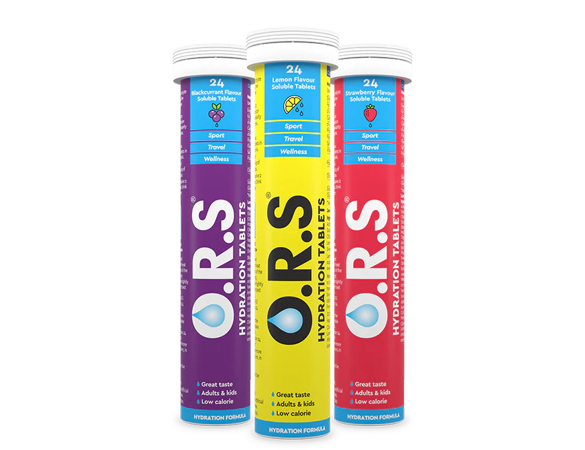 O.R.S Hydration Tablets are formulated to follow World Health Organisation oral rehydration solution guidelines. The mix of electrolytes combined with a low-calorie dose of glucose (17.2 kcal) is not only proven to be the fastest way to restore a healthy level of hydration, it also keeps you hydrated for longer than water alone.