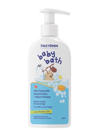 A baby bath wash that gently cleanses baby’s delicate skin without drying it or interfering with its normal pH levels while protecting the skin flora. Almond esters ensure the skin’s barrier is left intact, while chamomile extract offers anti-irritant and anti-inflammatory protection. Wheat proteins, which have emollient and moisturizing properties, protect the outer layer of the skin.