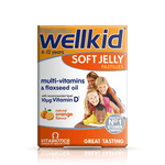 Wellkid Soft Jelly pastilles provide a multivitamin formula to help safeguard the nutritional intake of children aged 4-12 and are available in two great tasting flavours: Strawberry and Orange. No other supplement for children provides 11 vitamins plus flaxseed oil. Wellkid Soft Jelly includes all eight B-complex vitamins plus vitamin C, D and E. Two pastilles provide 10µg vitamin D as recommended by the UK Department of Health. Vitamin D is needed for the normal growth and development of bone in children.