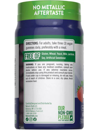 Each serving of our Zinc Gummies delivers 50 mg of Zinc (as Zinc Citrate), which meets the daily recommended value of this important mineral. Our extra strength gummy formula is vegan friendly and a delicious mixed berry flavor with no metallic aftertaste. Gummies are a wonderful alternative for those who dislike or have trouble swallowing pills and can easily be integrated into your daily routine.