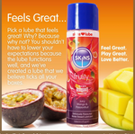 Arouse your sexual appetite and nourish your desires with Skins deliciously playful Passionfruit and Mango flavoured lube - Never has passion from a fruit felt so good. Perfectly matched in blended bliss - it takes two to Mango!
