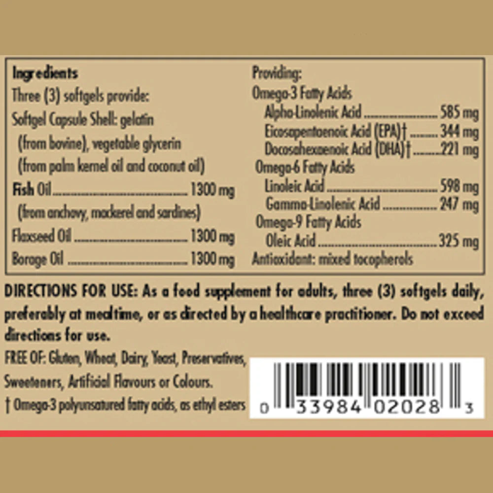 - Specially formulated ratio of Omega 3, 6 and 9 fatty acids