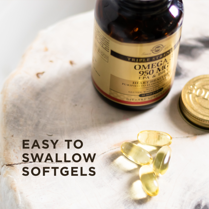 One Solgar® Triple Strength Omega-3 softgel taken twice daily helps: