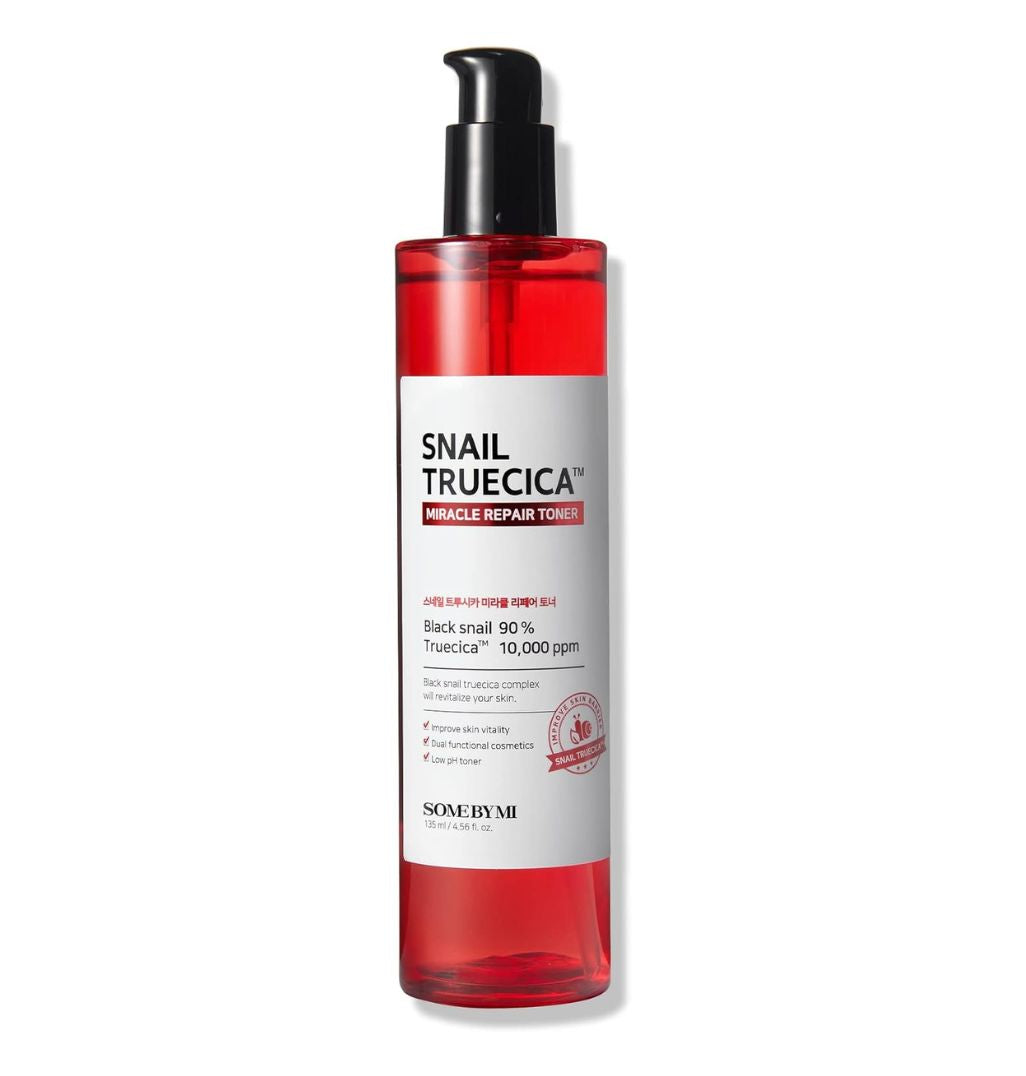 SNAIL TRUCICA TONER : Snail toner contains Snail Truecica 91% and mucin from black snail to repair damaged skin and enhance its ability to repair itself. This facial toner is free of harmful artificial ingredients, making it suitable for sensitive skin and effective in improving pigmentation from acne scars