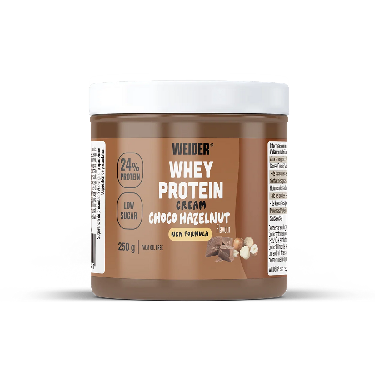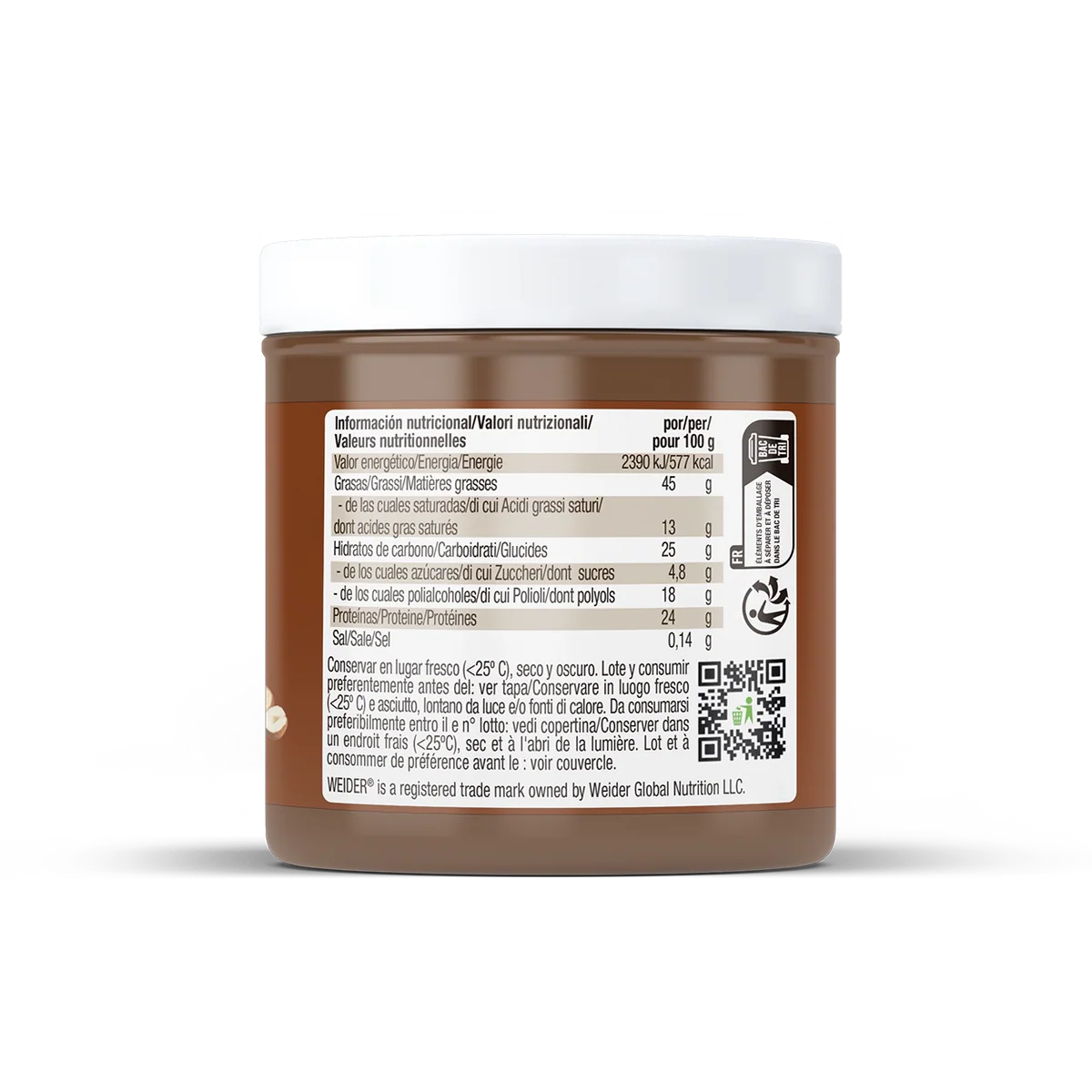 Spread with whey protein concentrate. With sweetener. Chocolate-hazelnut flavor.