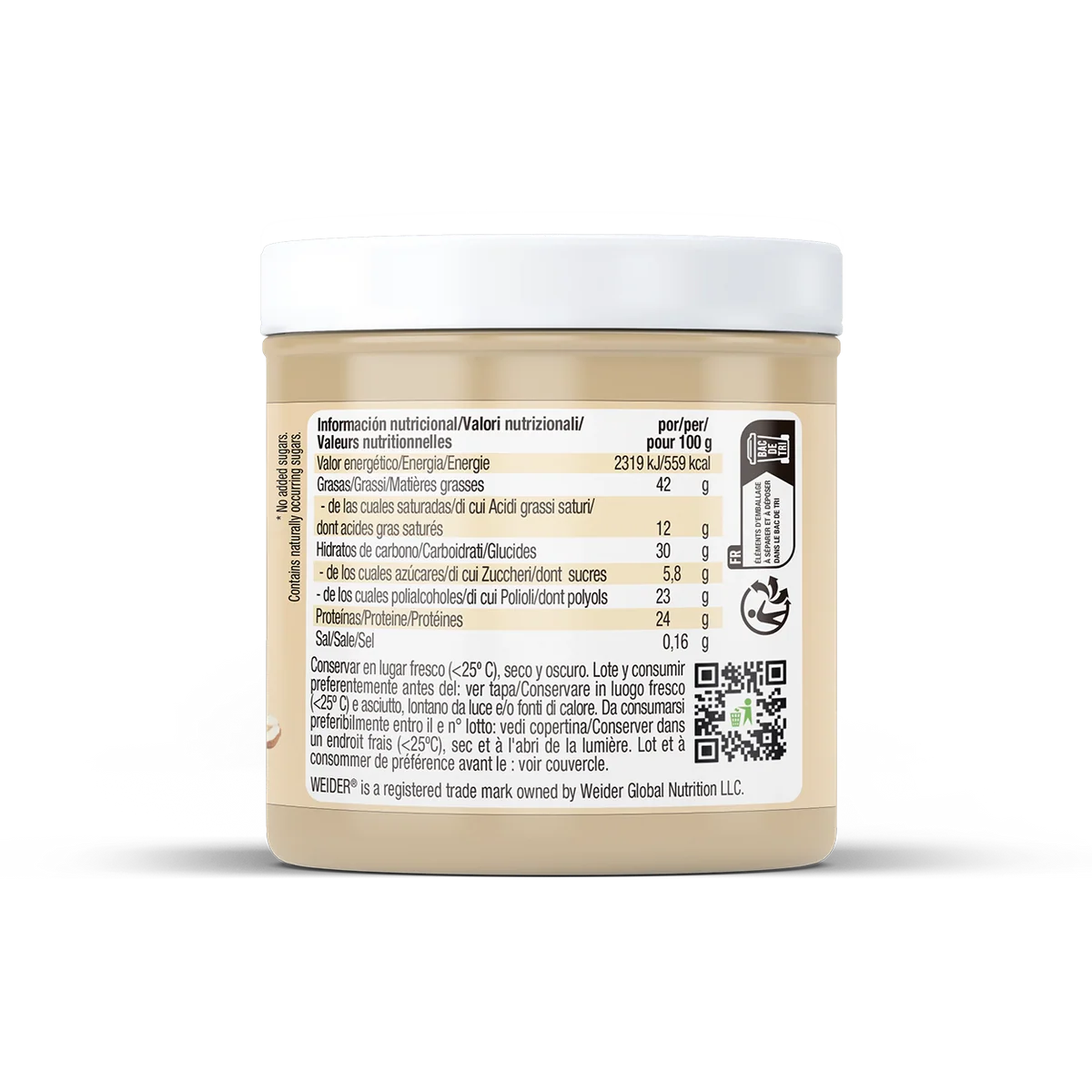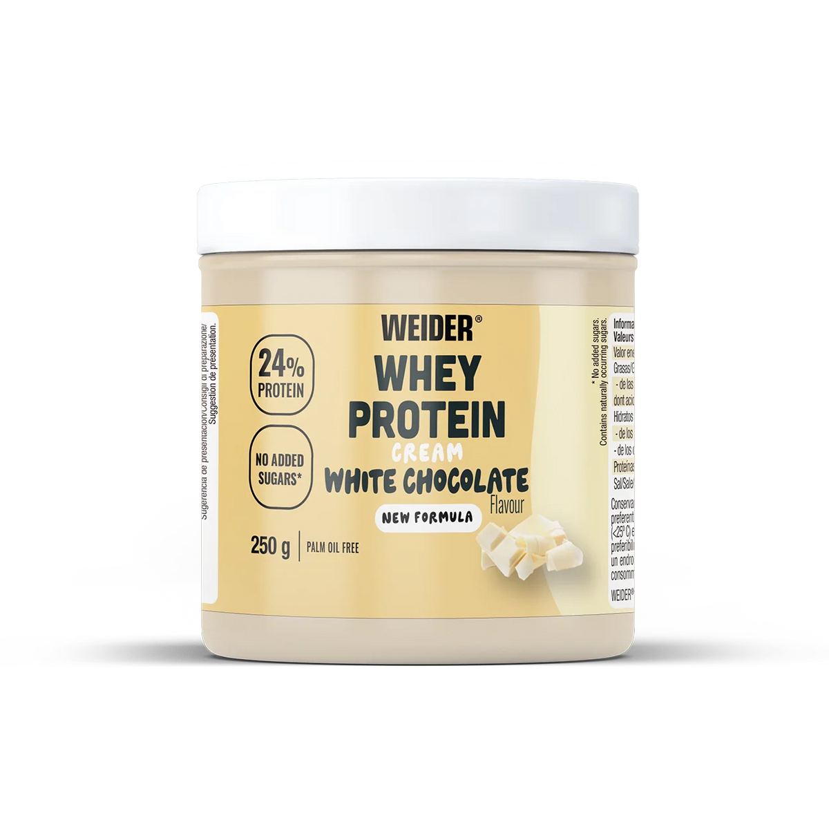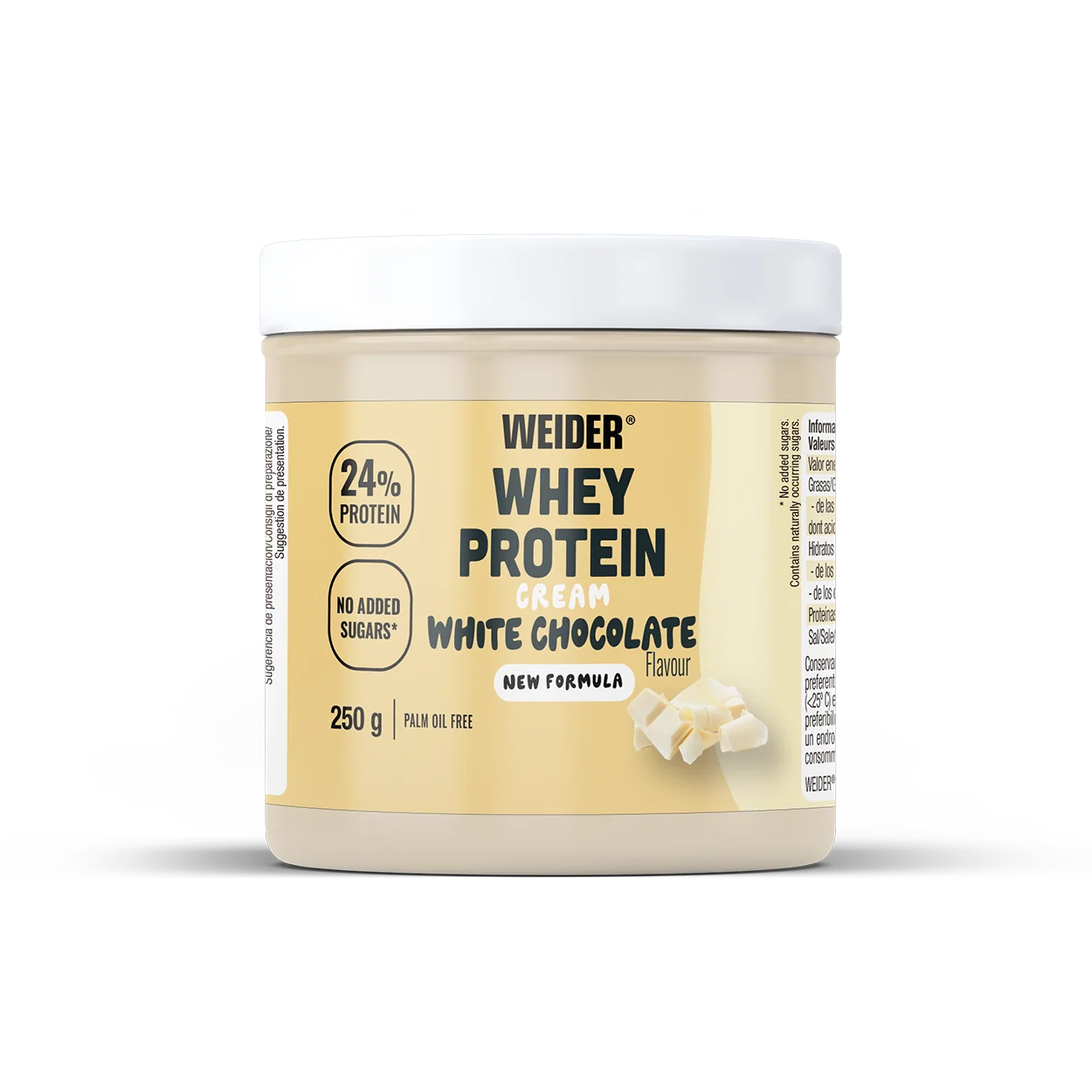 Spread with whey protein concentrate. With sweetener. White chocolate flavor.