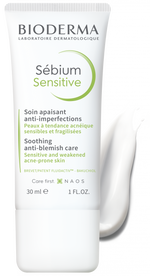 Sébium Sensitive is specifically formulated to moisturize and soothe sensitive and weakend acne-prone skin: - The original patented combination of Bakuchiol and the Fluidactiv™ patent (Seborestore technology) biologically rebalances the composition of sebum. - The Inflastop complex ™ eliminates inflamated spots and redness that could otherwise cause marks. - High concentration of glycerine provides an immediate and long-lasting hydration. - Mattifying powders combined with zinc help to eliminate shine.