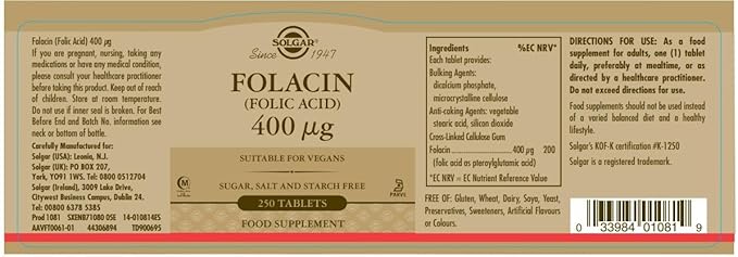 Folic Acid is a member of the B group vitamins. Other contributions Folic Acid plays in the body include normal blood formation, amino acid synthesis, and a healthy immune function. Folic Acid also contributes to maternal tissue growth during pregnancy. Regarding pregnancy, Folic Acid tablets should be taken from when methods of contraception are no longer being used right through until the end of the 12th week of pregnancy.