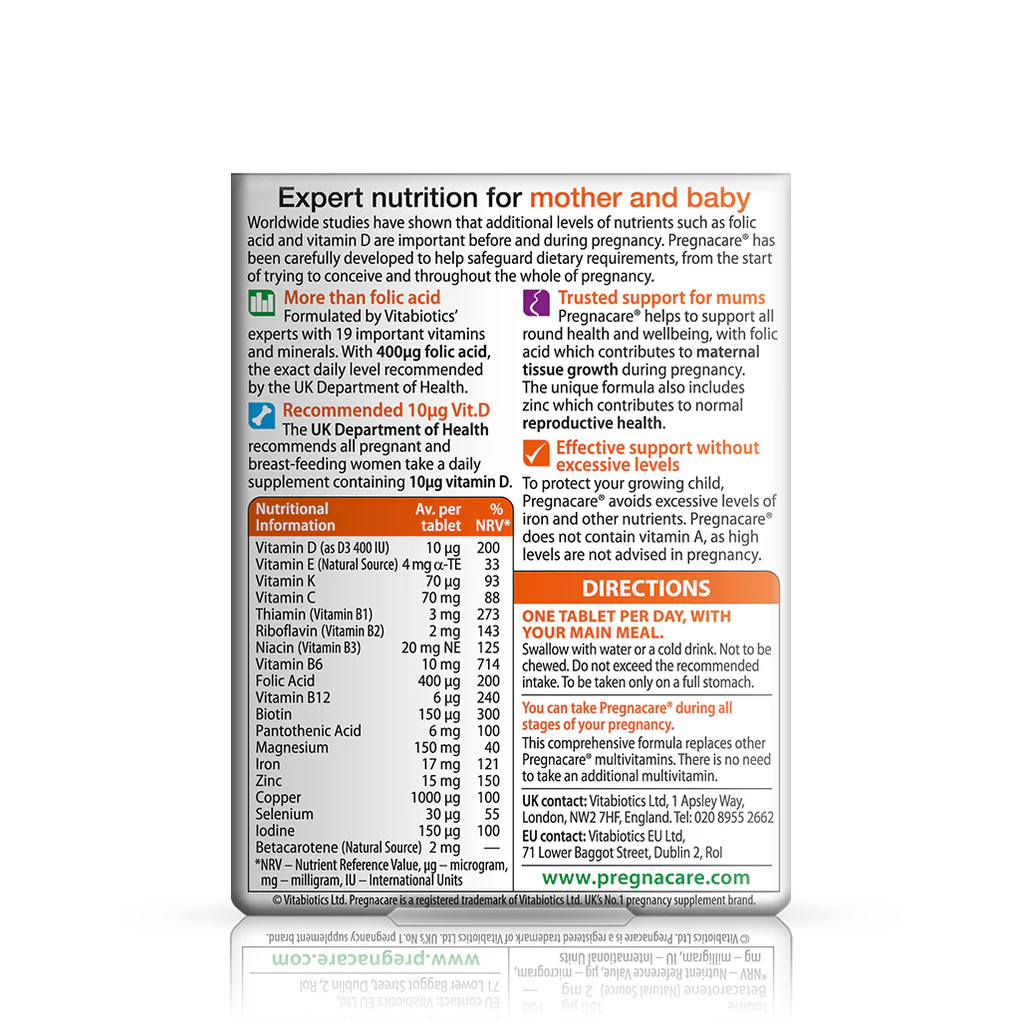 Pregnacare prenatal supplement is the most popular and trusted by mums to safeguard the diet of those who are planning for pregnancy or are already pregnant. A scientifically developed formulation of 19 important vitamins and minerals, Pregnacare contains 400µg folic acid and 10µg vitamin D, as advised by the UK Department of Health during pregnancy and breast-feeding. Pregnacare has been carefully developed by experts so that all ingredient levels are within safe levels for pregnancy and are moderate rather than excessive.