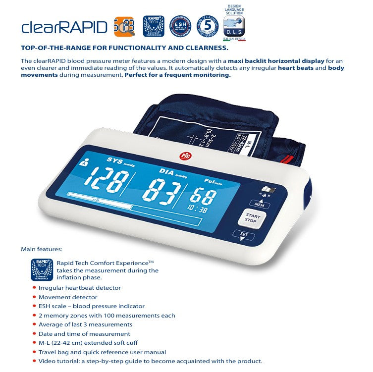 Clear Rapid has a soft, practical measurement cuff and comes in a compact, comfortable case so you can carry it around with you from day to day.It is guaranteed for 5 years.