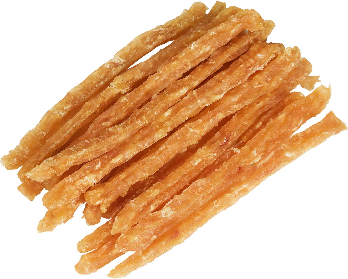 This delicacy is quite simple. Pure chicken fillet strips are slowly cooked in oven to become the greatest treat ever made. Easy to break into smaller pieces to use for training as a reward.