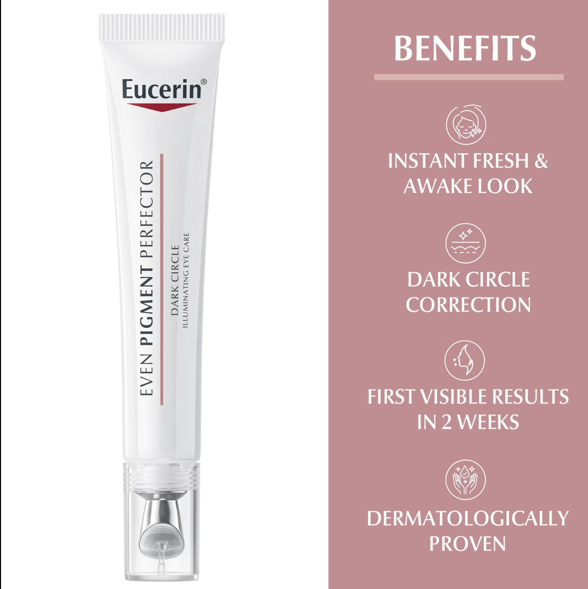 REDUCES DARK CIRCLES: Eucerin Even Pigment Perfector Dark Circle Illuminating Eye Corrector is formulated with patented Thiamidol that corrects and reduces all type of dark circles, puffiness and soothes fine lines while brightening and smoothing your eye area with a cooling metal applicator for optimal performance.